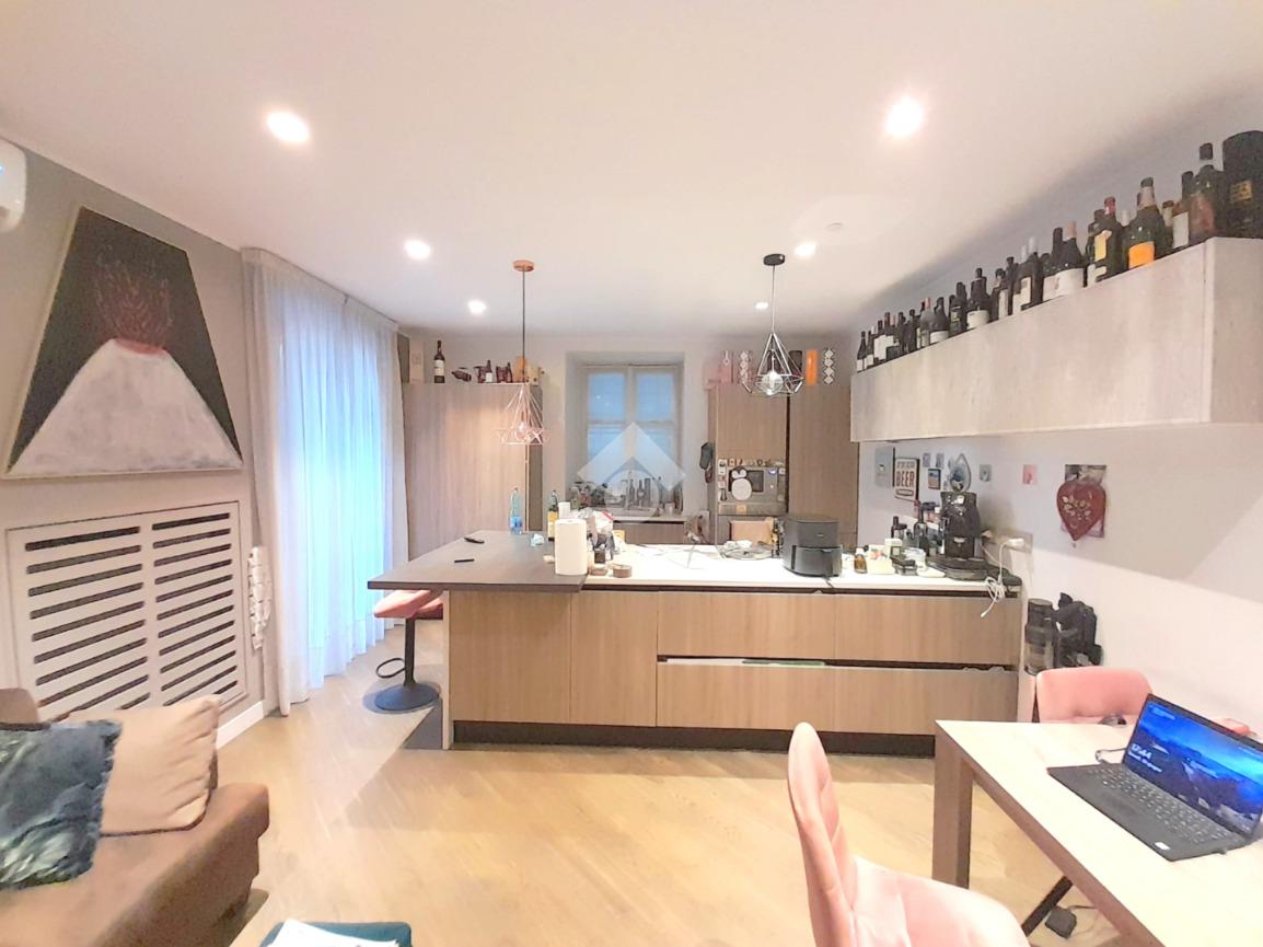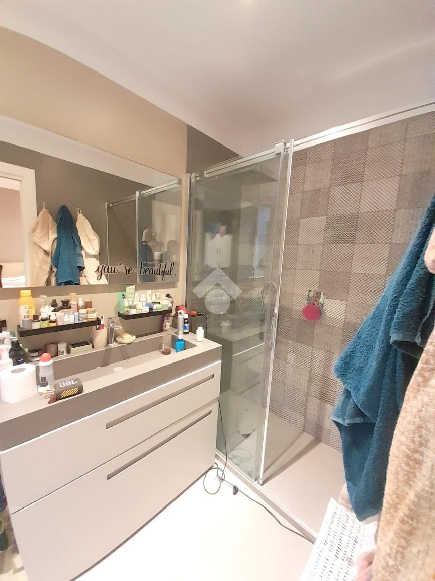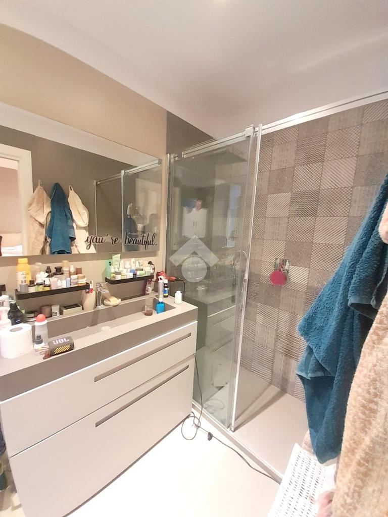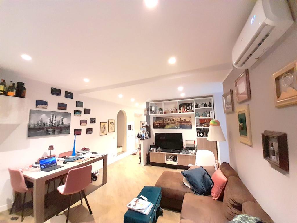 L'appartamento è composto da ingresso in disimpegno, ampio soggiorno con cucina a vista, una camera matrimoniale, doppio wc e ulteriore camera attualmente adibita come cabina armadio. A completare la quadratura troviamo un comodo terrazzo a livello.