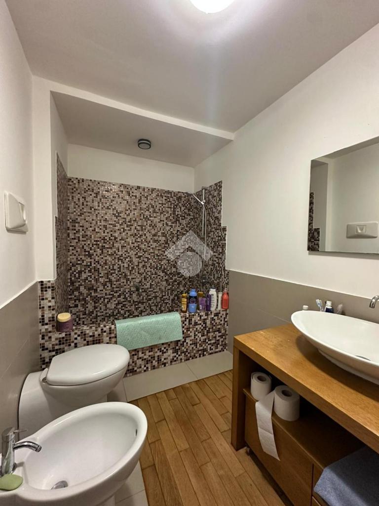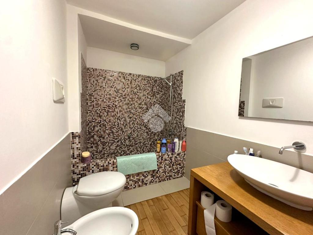 La soluzione offre un ambiente elegante composta da un ampio soggiorno, una cucina ben attrezzata, una camera da letto con una piccola cabina armadio, due bagni e una lavanderia.