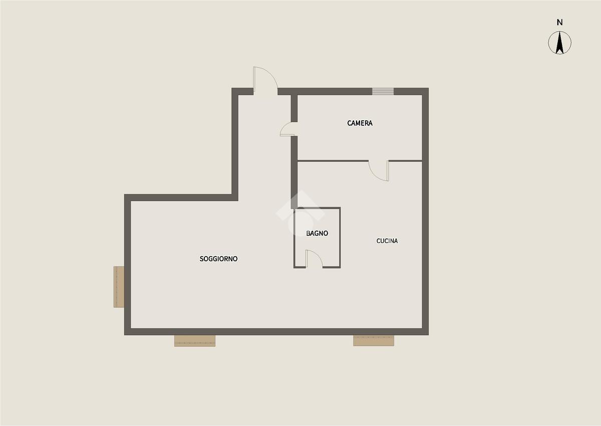 La superficie interna è così composta: ingresso, soggiorno, cucina, una camera matrimoniale e bagno.